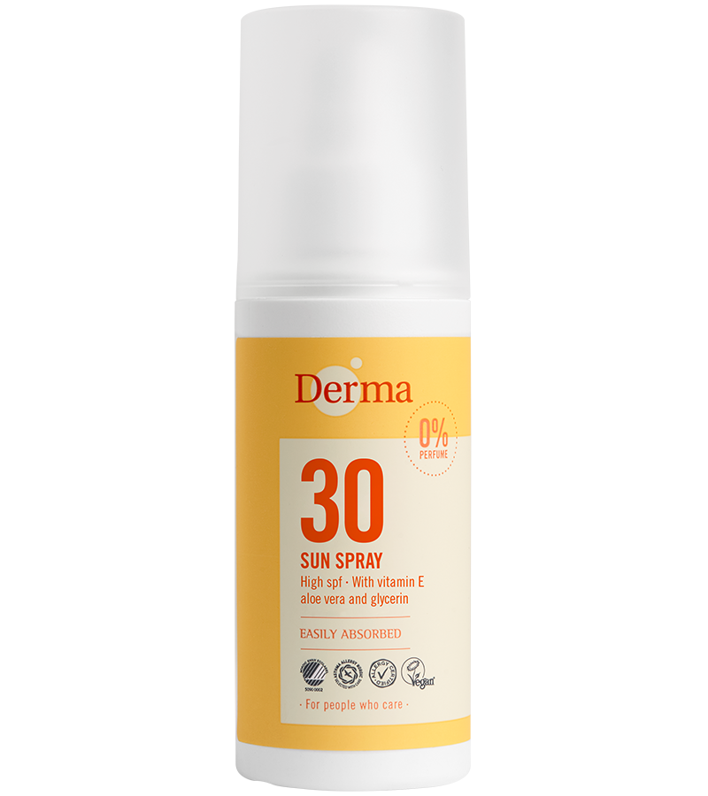 Både Derma Sollotion SPF30 og Derma Solspray SPF30 indeholder derudover fugtgivende glycerin, E-vitamin og olier, der gør huden smidig og blød og beskytter mod udtørring.