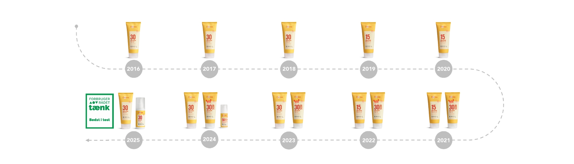 I solcremetesten for 2025 har Forbrugerrådet Tænk igen kåret Derma Sollotion SPF30 Bedst i test. Vores Derma Solspray SPF30 fik også en kåring som Bedst i Test. Begge solcremer lever op til alle kriterierne fra Forbrugerrådet Tænk – og mere til.