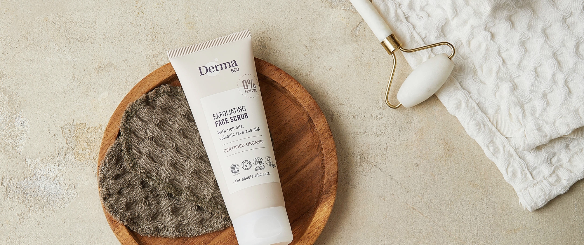Nyd godt af naturens nærende olier og gode fugtgivende ingredienser i Derma Eco Face Scrub. Vi ved, hvad din hud har godt af. Men også, hvad den bør undgå. Vi kalder det 0% unødig kemi – 100% nærende pleje.