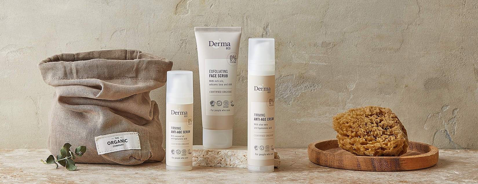Start med at rense din hud og fjerne din makeup. Skal det gå stærkt, er Derma Eco Makeup Remover/Micellar Water med Aloe vera og glycerin nem at gå til, men har du mere tid, så anbefaler vi, at du starter med Derma Eco Cleansing Gel, der er lige dele mild og effektiv og samtidig beroliger og plejer huden.