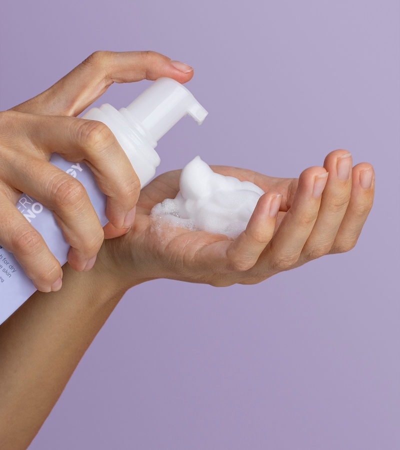 Renser og fugter. Højt glycerin-indhold. Særligt velegnet til tør, sart og uren hud.