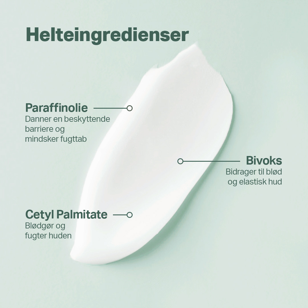Fed lipidcreme, som holder effektivt på hudens fugt og samtidigt lægger en beskyttende barriere over huden. Er karakteriseret ved at smelte ved let opvarmning, når den smøres på huden. Velegnet til anvendelse på store hudområder, gerne hele kroppen.